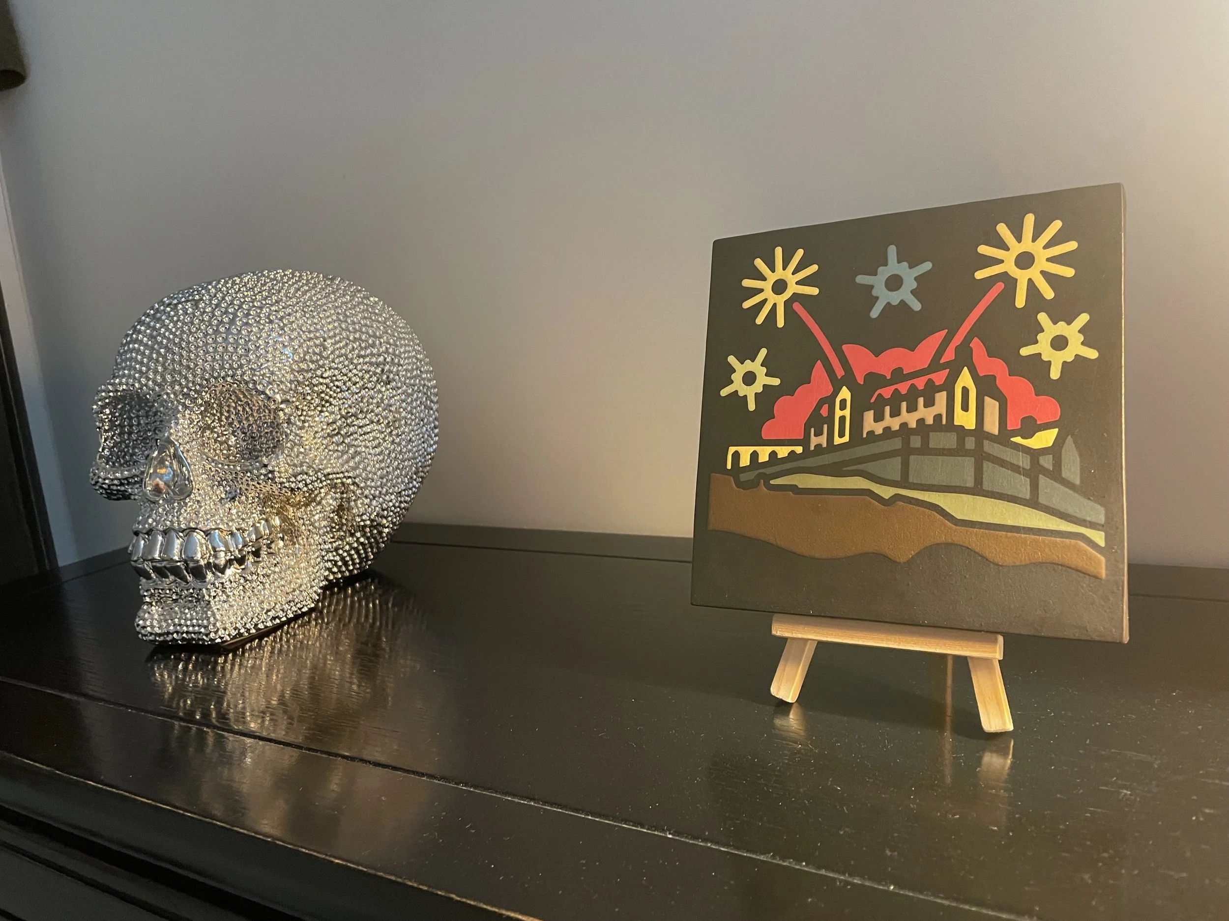 Client Story | Edinburgh Castle at night : Encaustic tile commission for a 20th wedding anniversary
