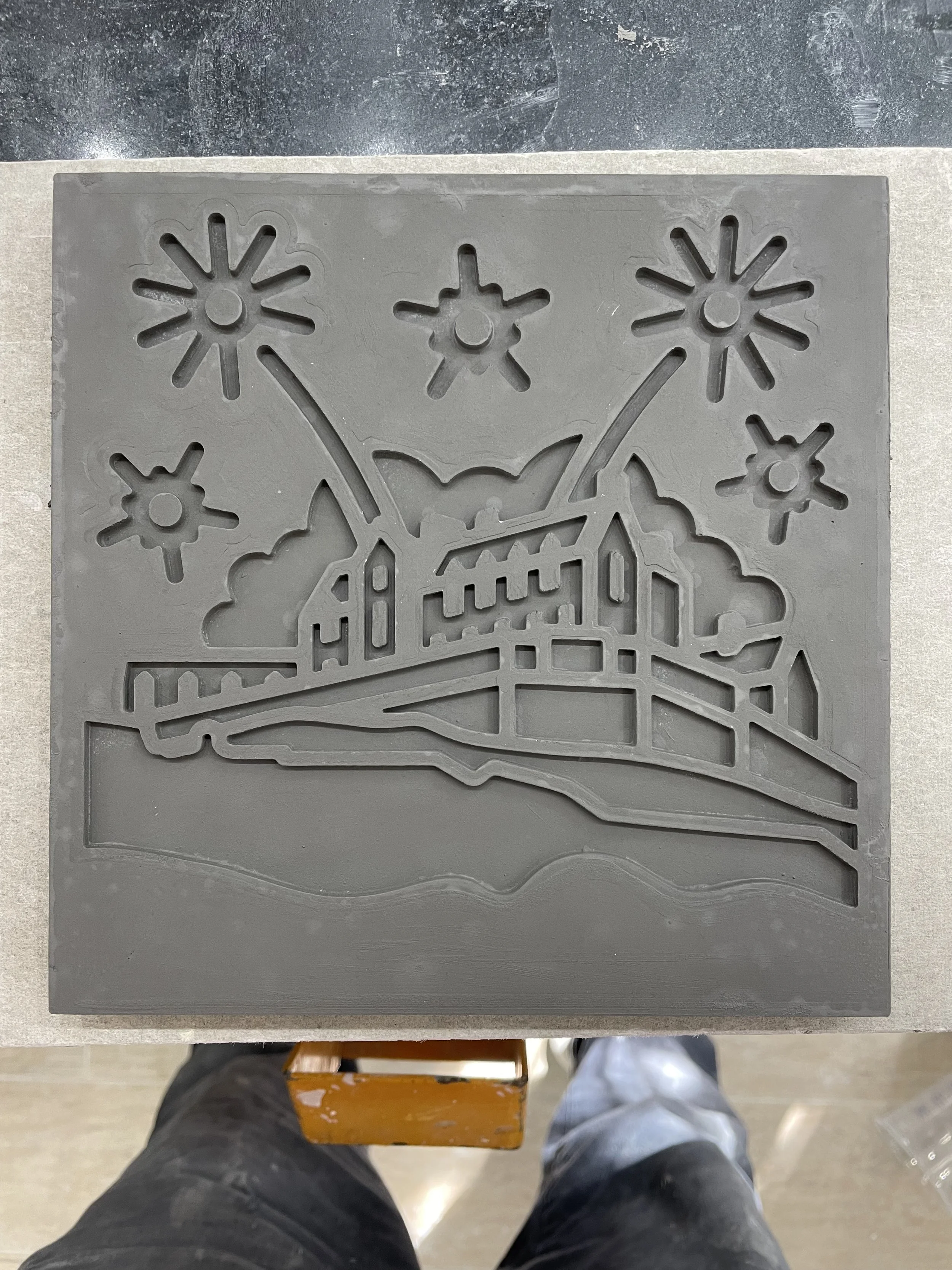 The pressed tile body - Every detail of the Edinburgh Castle design is carefully inlaid by hand