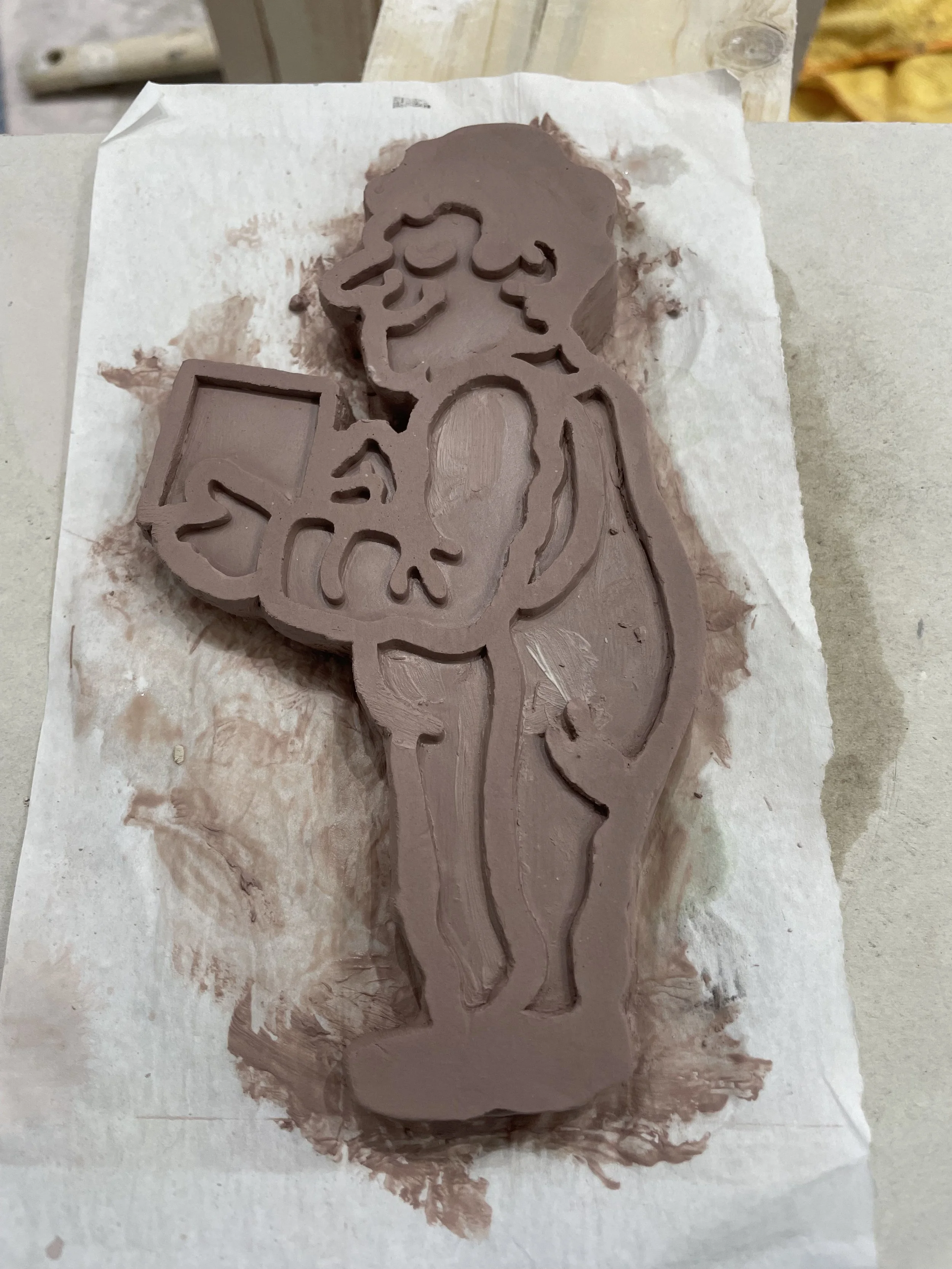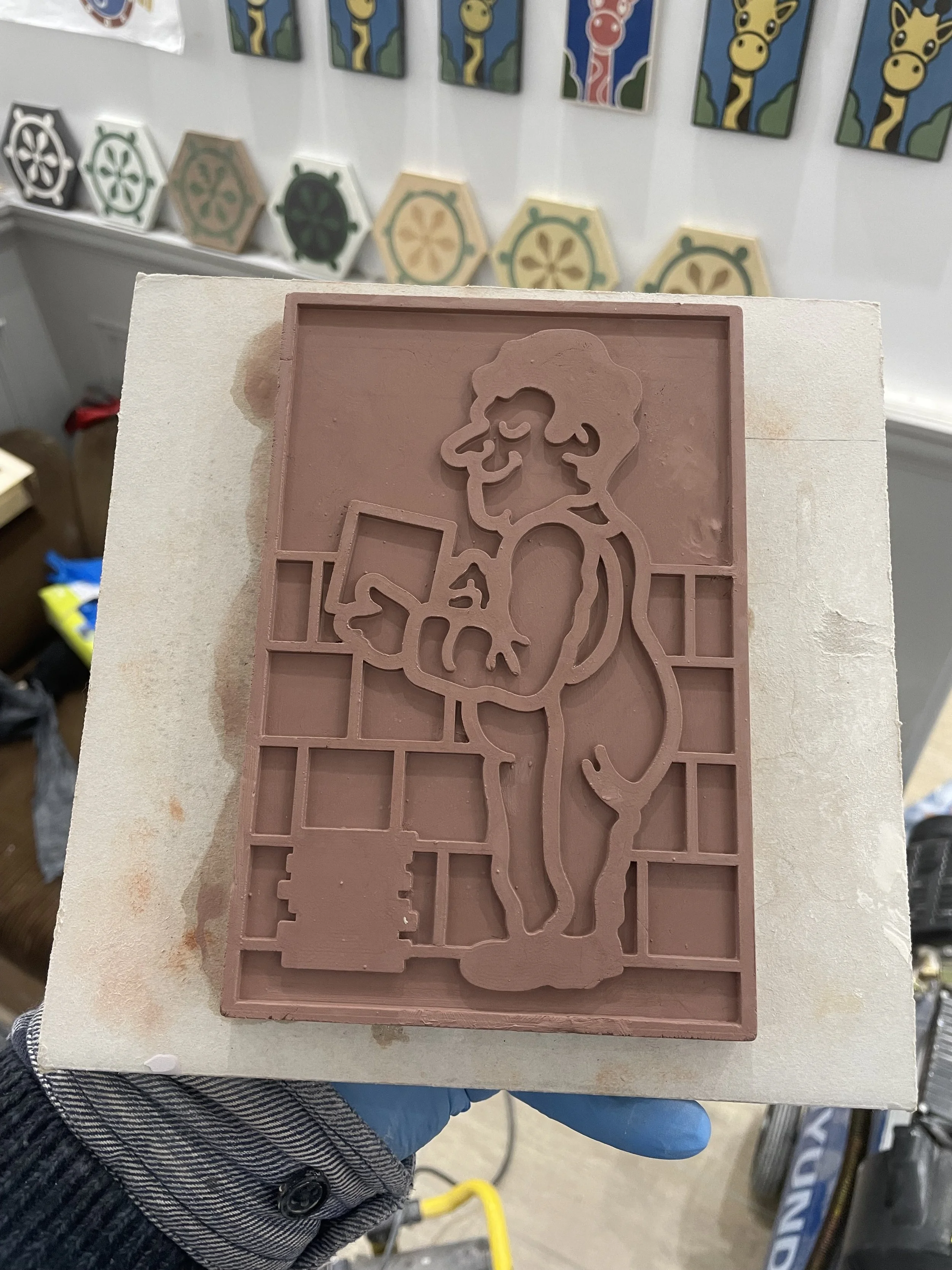 Today, it’s where I mix clay, press tiles, pour inlays and where I sell my own pieces to continue a tradition.