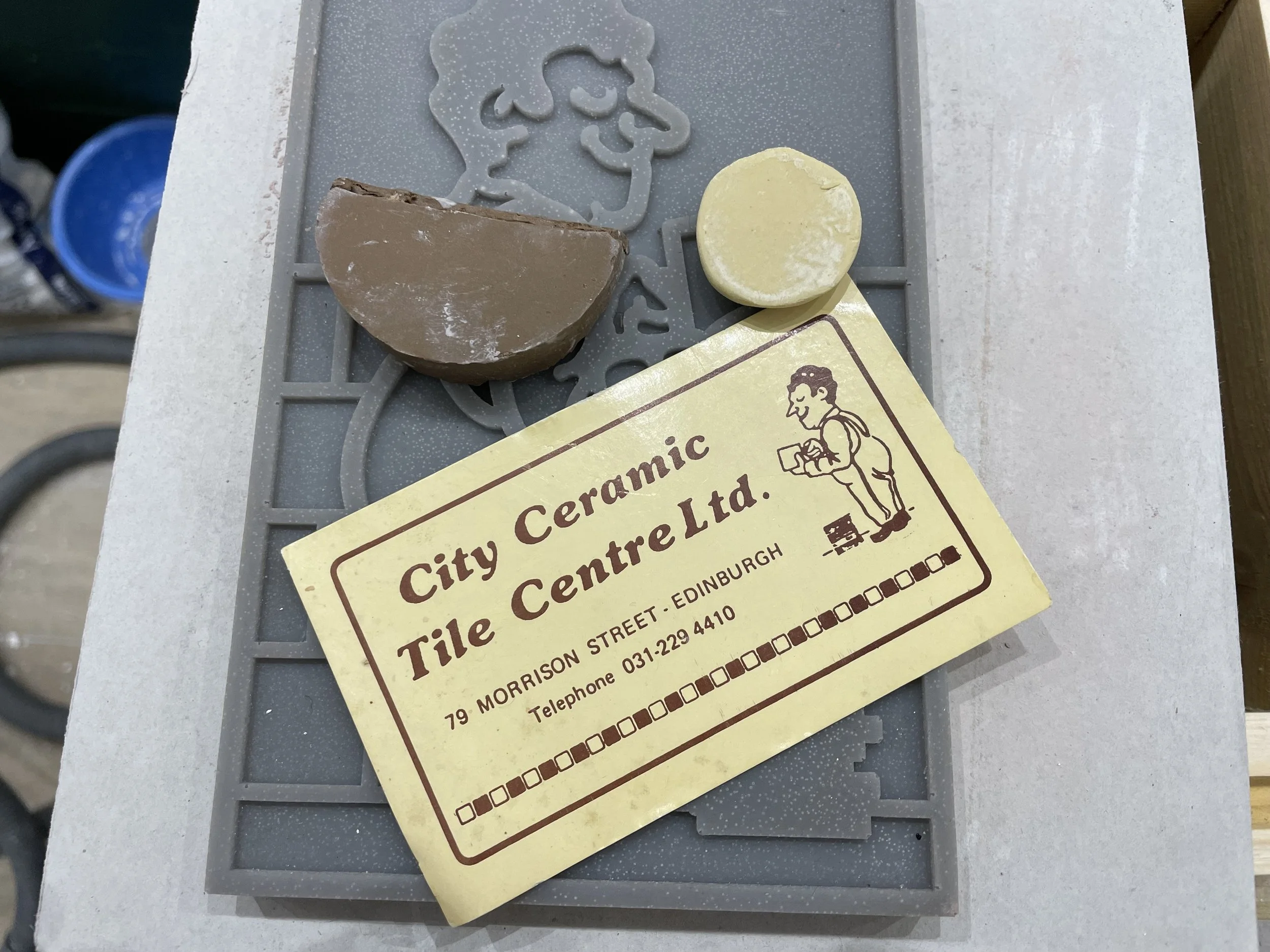 My father’s business card from City Ceramic Tile Centre - the beginnings of the prototyping and colour matching stage